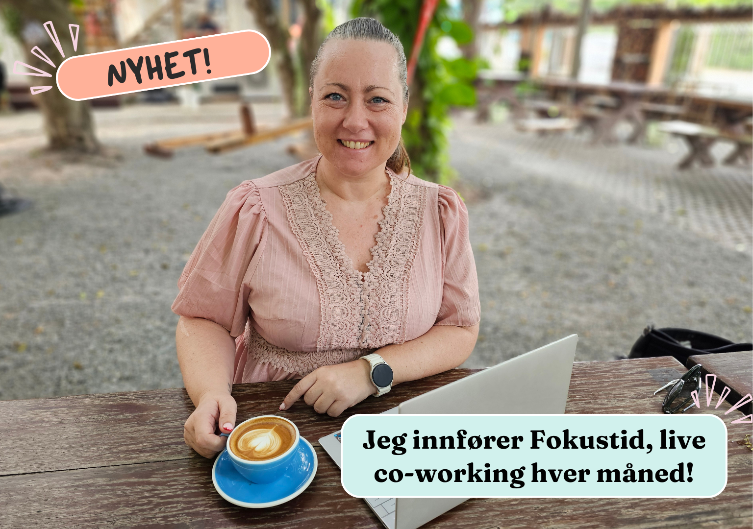Derfor innfører jeg Fokustid for alle som er medlem i Businesstrategi Pluss. Fokustid er en fast månedlig jobbe-date hvor vi møtes live til co-working i 2 timer.