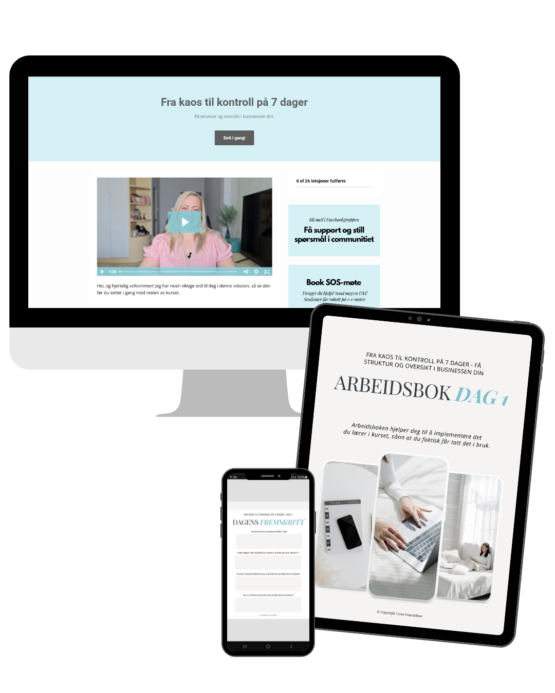 I kurset "Fra kaos til kontroll på 7 dager" lærer du hvordan du finner ut hva som stjeler tiden din, hvilke oppgaver som faktisk tar deg fremover, og hva du kan slutte å bruke energi på.